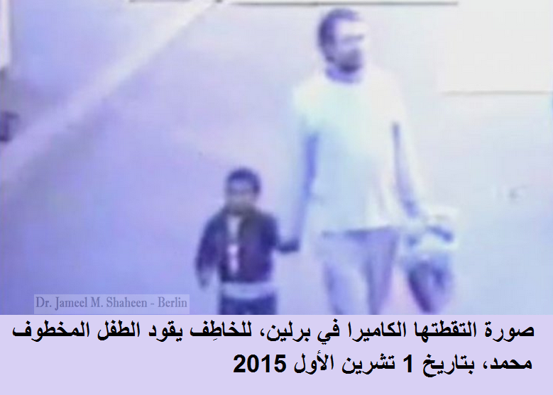 مدينة برلين: 1 تشرين الأول اختطفَ الطفل محمد 4 سنوات من أمام مركز المساعدات الاجتماعية ببرلين، بينما كان برفقة والدته وشقيقتيه ينتظرون دورهم، وسط مئاتٍ من اللاجئين، وشوهد الطفل برفقة رجل ملتحي يقوده بعيداً كما التقطته إحدى الكاميرات. مرّ عشرة أيام على عملية الاختطاف.